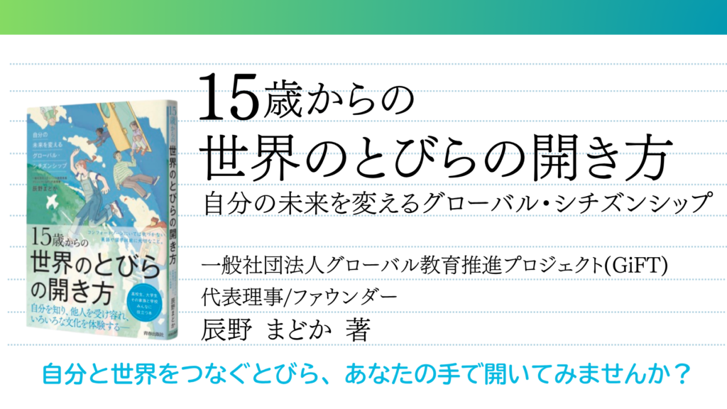 ラジオ内でお話ししている、代表 辰野まどかの著書『15歳からの世界のとびらの開き方』(通称:セカトビ)については特設ページをご覧ください!