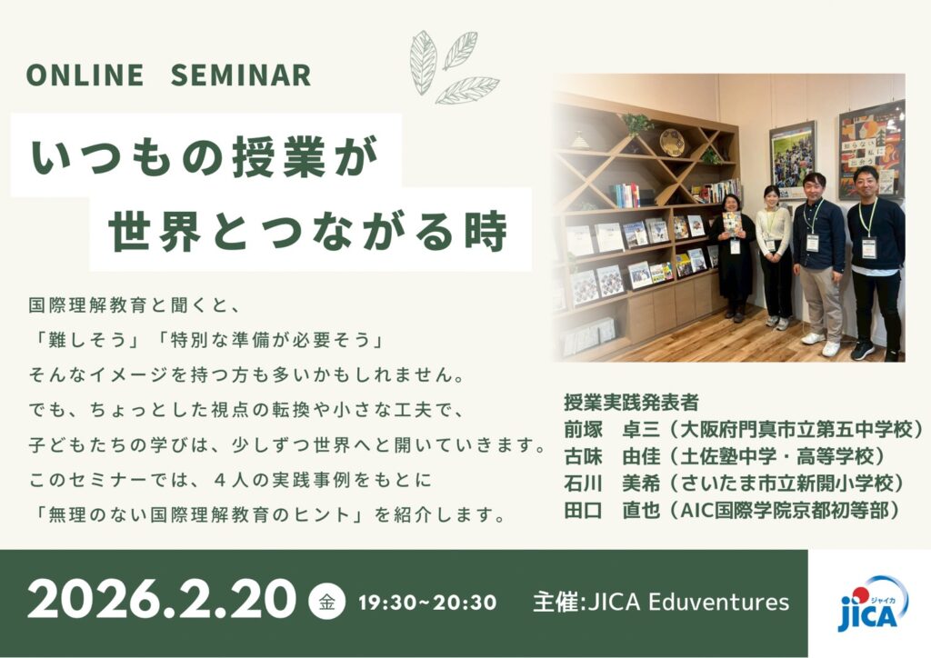 | 2月20日(金)19:30-20:30 いつもの授業が世界につながるとき 定員:人数制限なし |