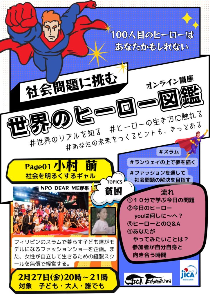 | 2月27日(金)20:00-21:00 世界のヒーロー図鑑 定員:人数制限なし |