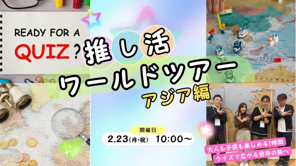 | 2月23日(月・祝)10:00-11:00 推し活ワールドツアー in アジア 定員:人数制限なし |
